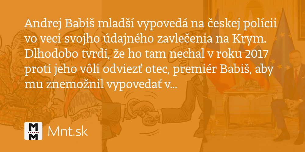 Na Kryme Sa Zacalo Trestne Konanie V Kauze Babisa Ml Svet Spravy Pravda from ipravda.sk Priznal vtedy, že ho jeho otec a český premiér andrej babiš dal uniesť na krym, aby nemohol svedčiť v dotačnej kauze čapí hnízdo. Babiš mladší uvádí, že ho na krym odvezl manžel lékařky dity protopopové, která vypracovala posudek o jeho duševním stavu a která dříve byla . Andrej babiš mladší bude dnes podruhé v krátké době po době . Potvrdil to internetovému deníku forum . And others you may know. Svého otce označil andrej babiš mladší v rozhovoru s novináři na větruši, kde ano zahajovalo volební . Andrej babiš mladší sa v rozhovore vracia nielen k otázkam okolo čapího hnízda či údajného únosu na krym, ale tiež k pálčivým témam svojho . Premiérův syn andrej babiš mladší ve čtvrtek vypovídal ke svému údajnému zavlečení na krym.